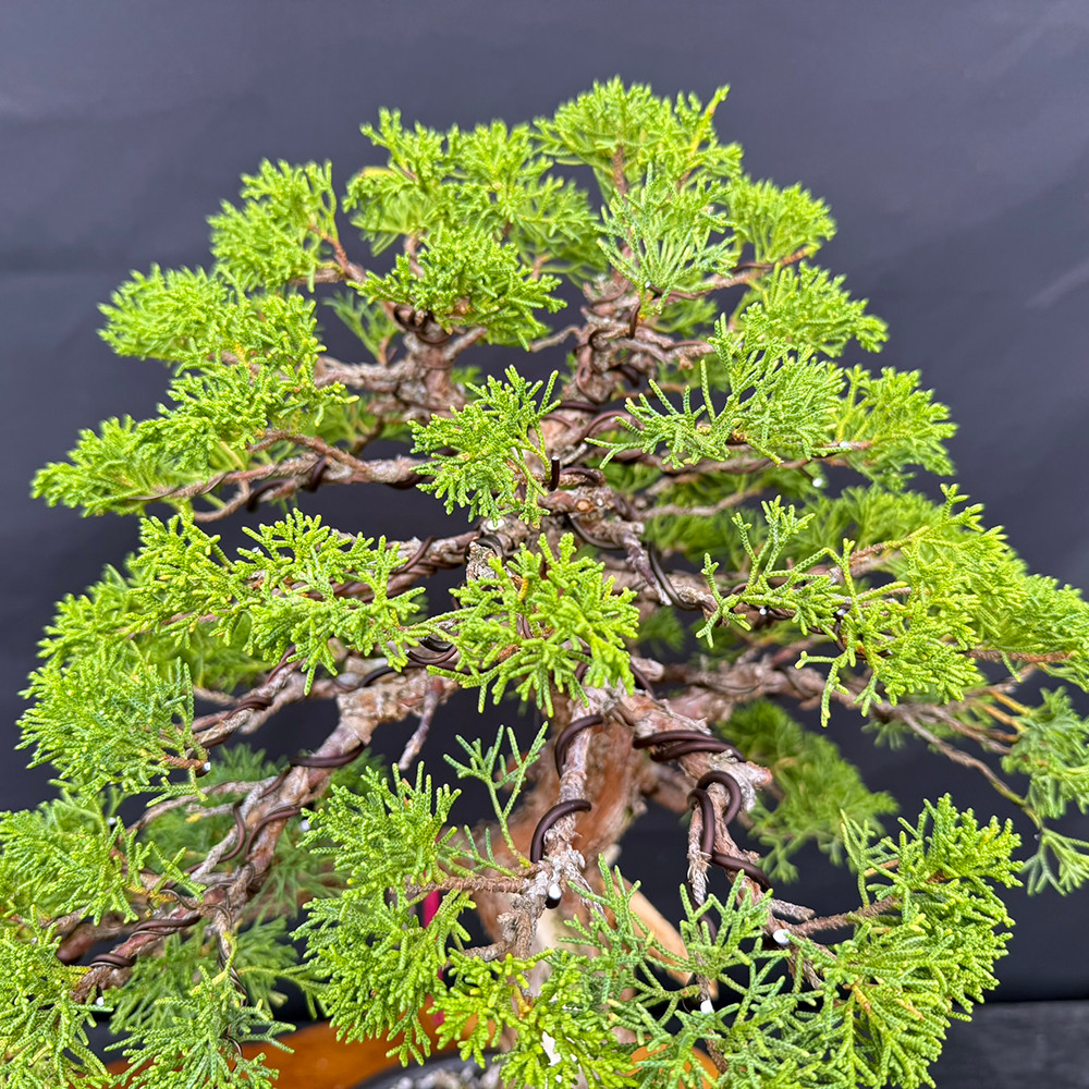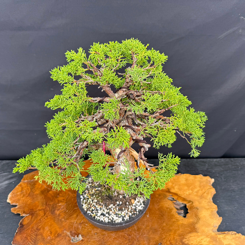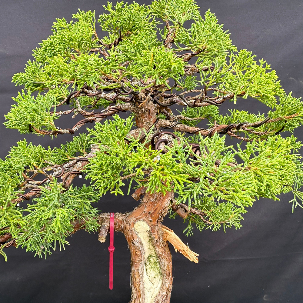 Recently given its first styling by Peter Olson (August 10, 2025), this tree has the foundation to become an exhibition-level bonsai in the coming years. The dense Kishu foliage allows for refined pad work, while the broad base and aged bark provide the visual gravity that enthusiasts seek in mature junipers.
