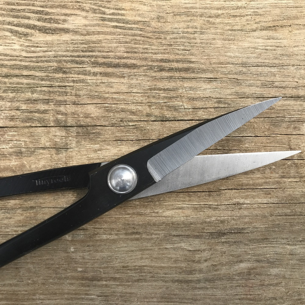 Known as the Hasami Shear, It's a traditional style tool useful for defoliating and pruning smaller branches. We use this shear for bud trimming, thinning and defoliating bonsai at the nursery. Trimming young buds prevents branches that grow too long and promotes growth of short, small, fuller branches. These Tinyroots brand Long Handle Shear offers superior precision and the ultimate in lifetime bonsai tools.