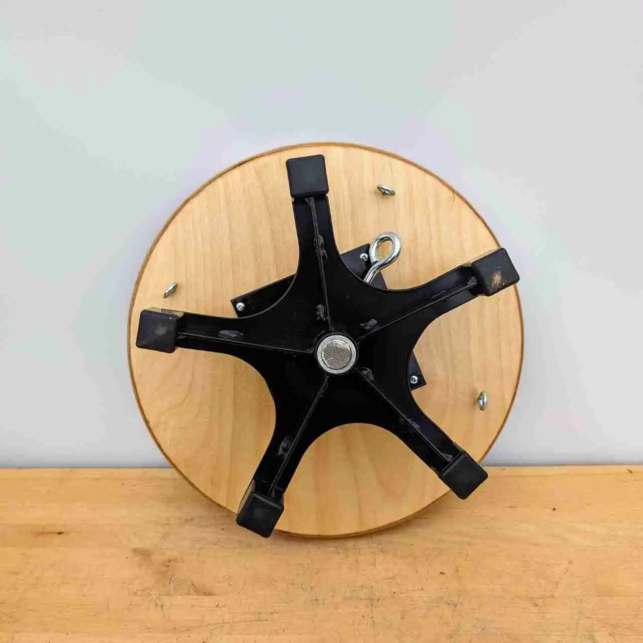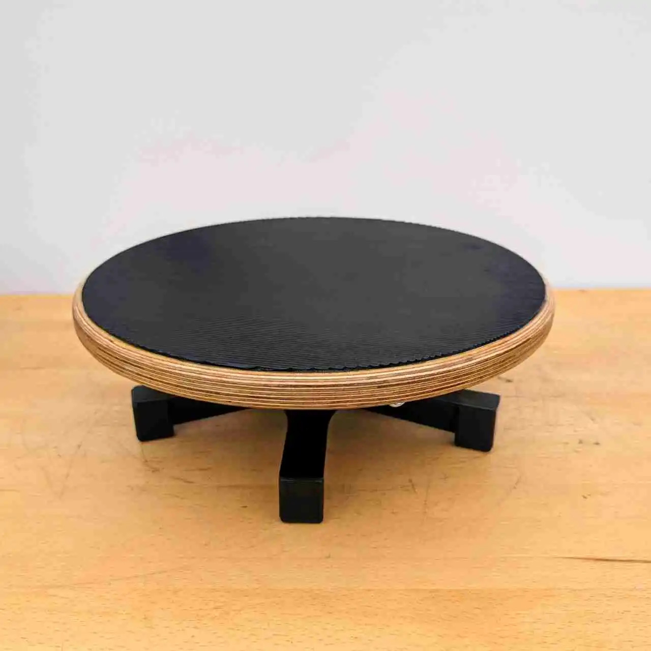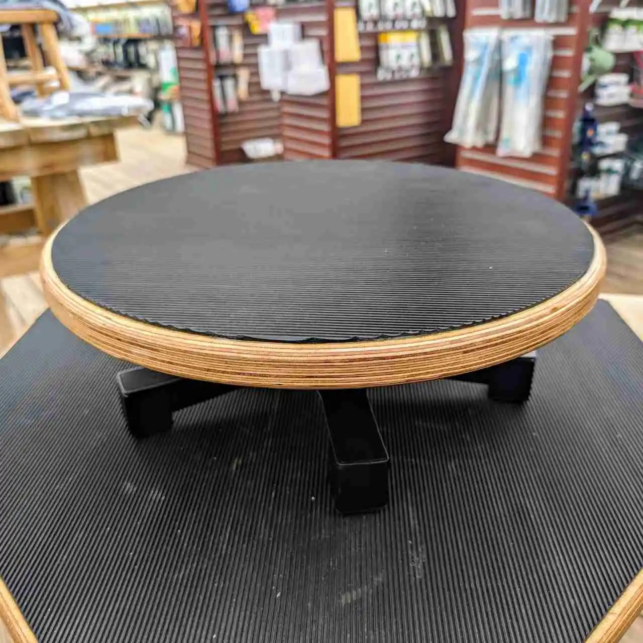 This is a high quality, well made turntable that measures 15" across the table and is covered in rubber to protect top.