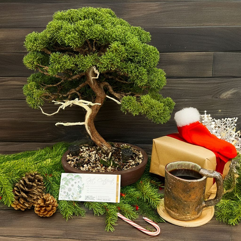 Give a gift bonsai lovers will actually use. This festive, old-school paper certificate is hand-filled by our team and mailed to you or directly to the recipient. Redeemable in-store at NEBG for trees, pots, tools, soil, and workshops.