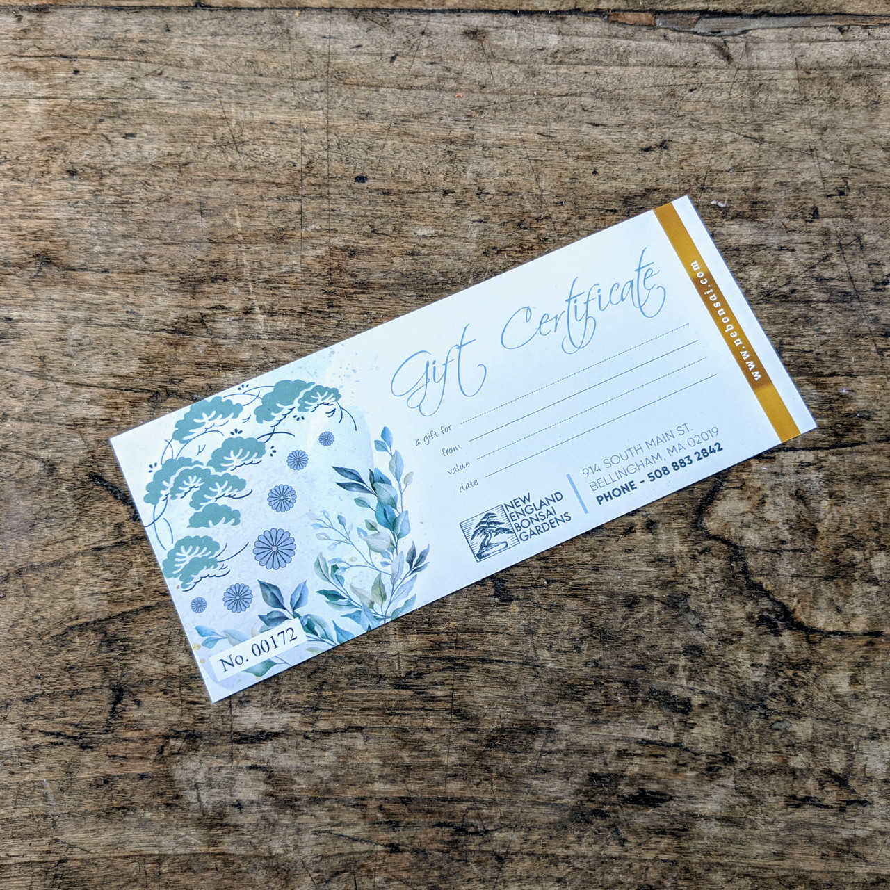 Want to use it online (including workshops)? Our Digital Gift Certificate is the smoothest option for website checkout. If your recipient only has this paper certificate and needs to use it online, they can email the certificate number to NEBonsai@NEBonsai.com and we’ll assist.