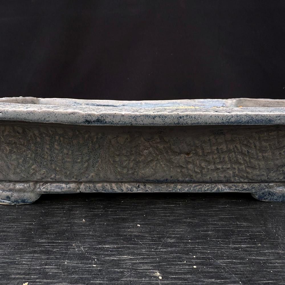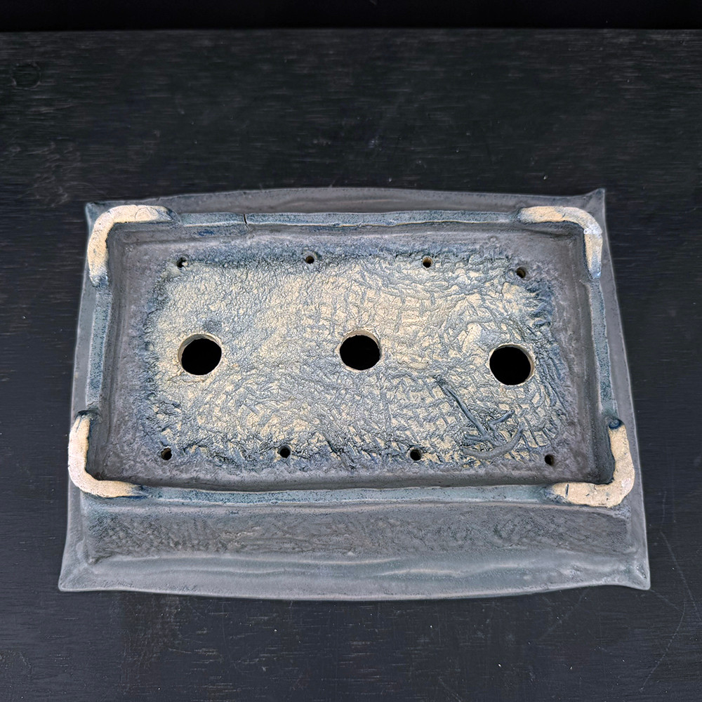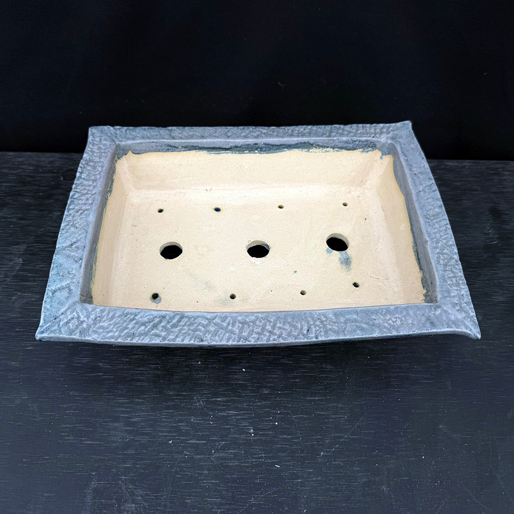 Slate-Blue Crosshatch Rectangular Bonsai Pot with Flared Corners – John Fazzino