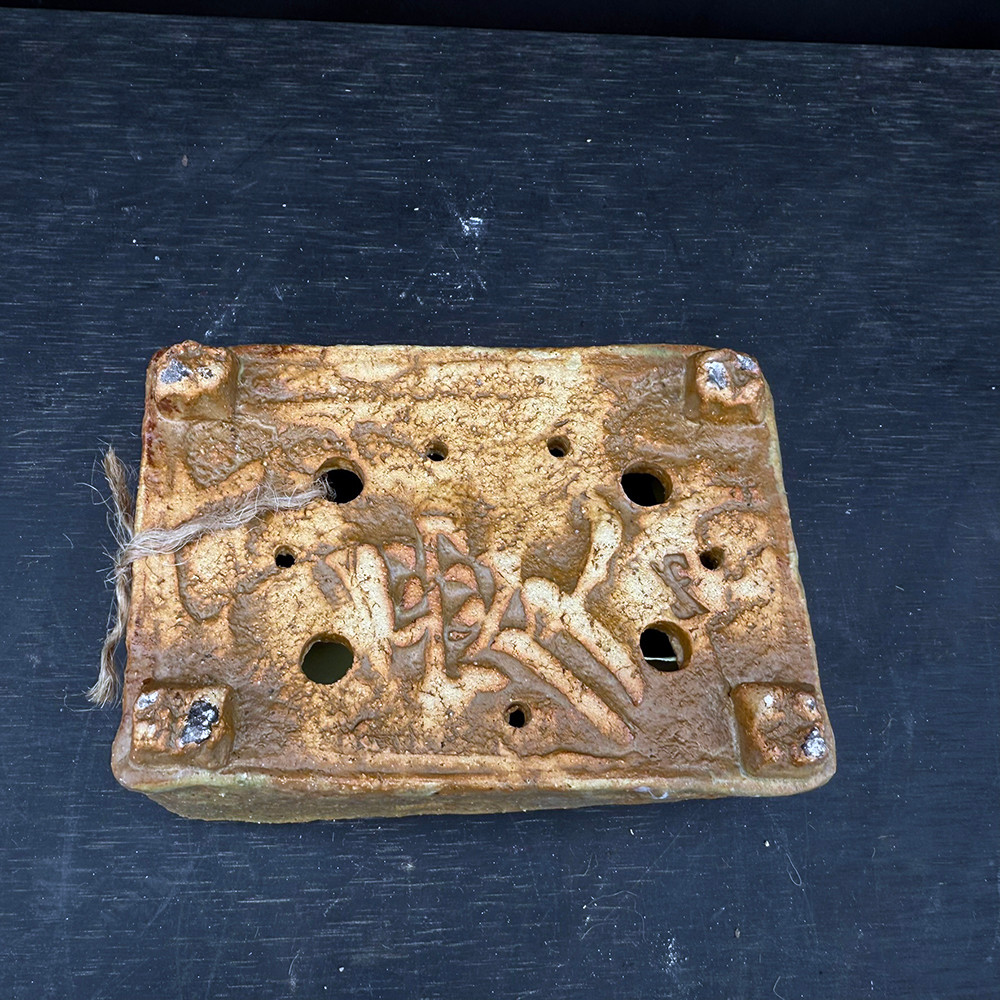 This handmade rectangular bonsai pot by John Fazzino is more than just a container—it’s a vessel of meaning. Embossed into the rugged, earthy clay is a sacred Japanese symbol for “Love.” According to the artist, this symbol represents the harmony between nature and spirit—an invitation to cultivate patience, beauty, and connection through bonsai.