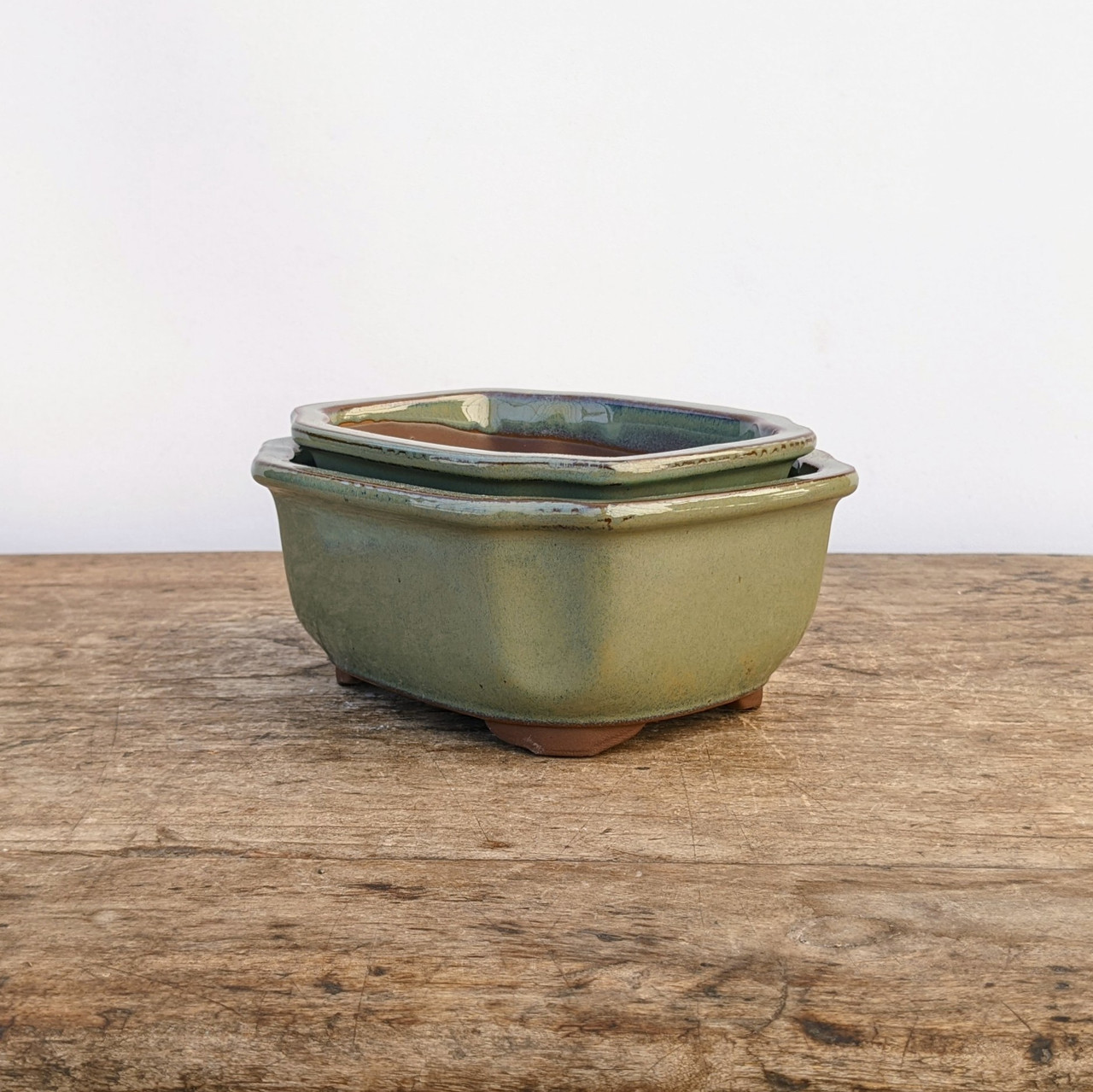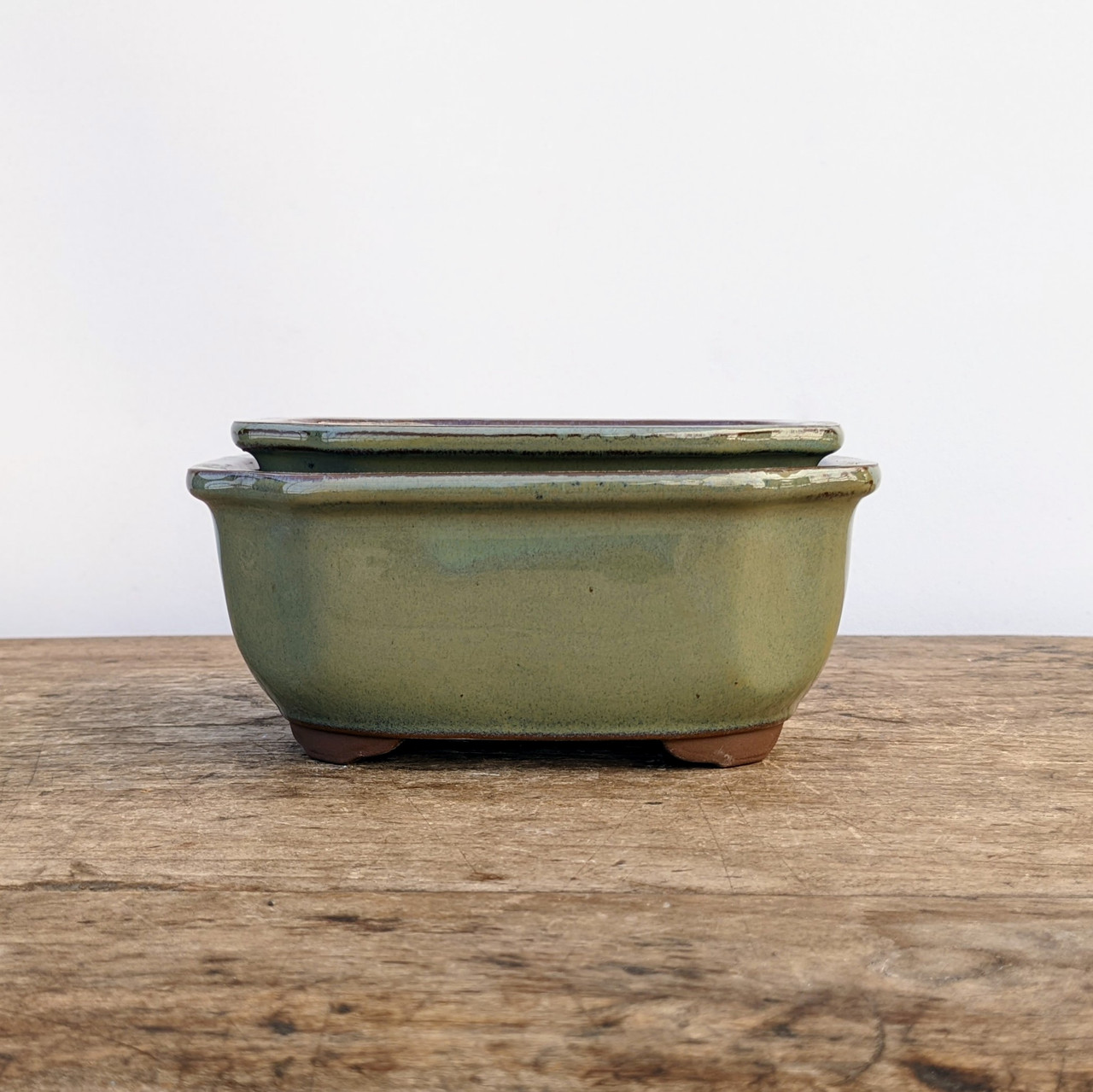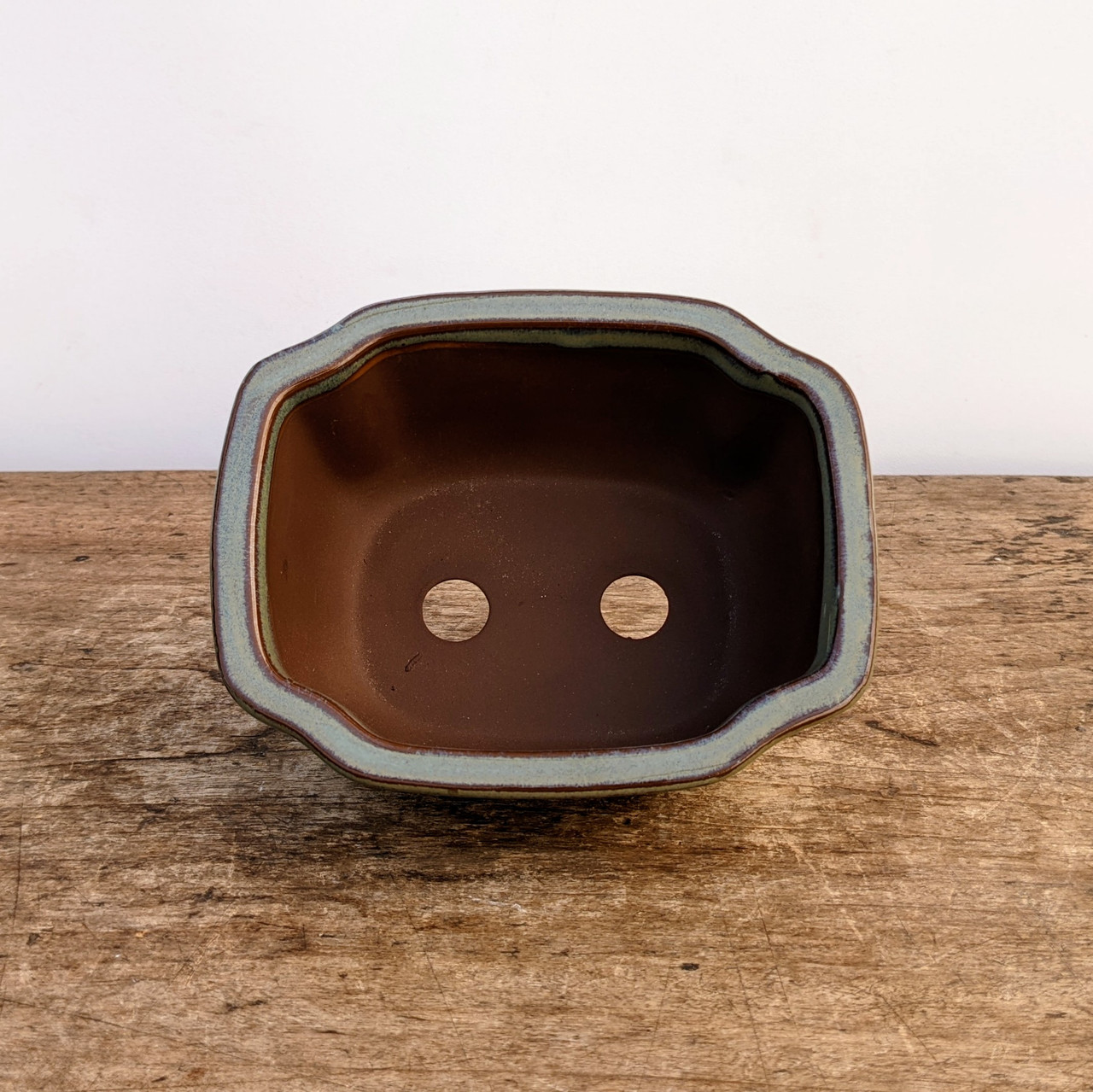 Oribe (Green) Tokoname Bonsai Pot (Free Drainage Mesh)