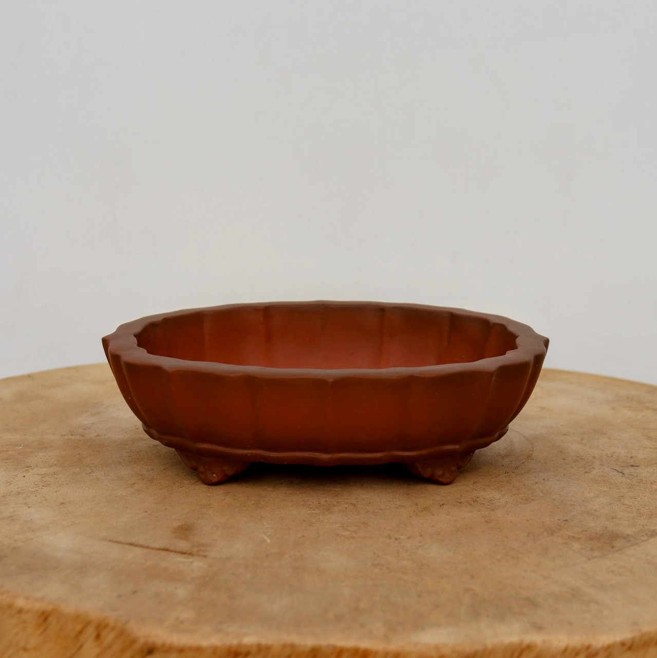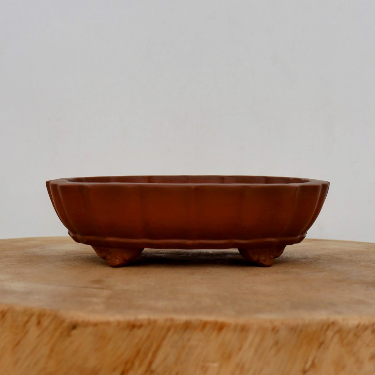 From the “YiXing” area of China's Jiangsu Province , widely considered the pottery capital of the China, these pots are simple, elegant, and shaped by hand. In fact, you'll find the craftsman's mark on the bottom of every pot. And each pot is made from the purple clay found near the Yangtze River, the best material there is for bonsai pots.