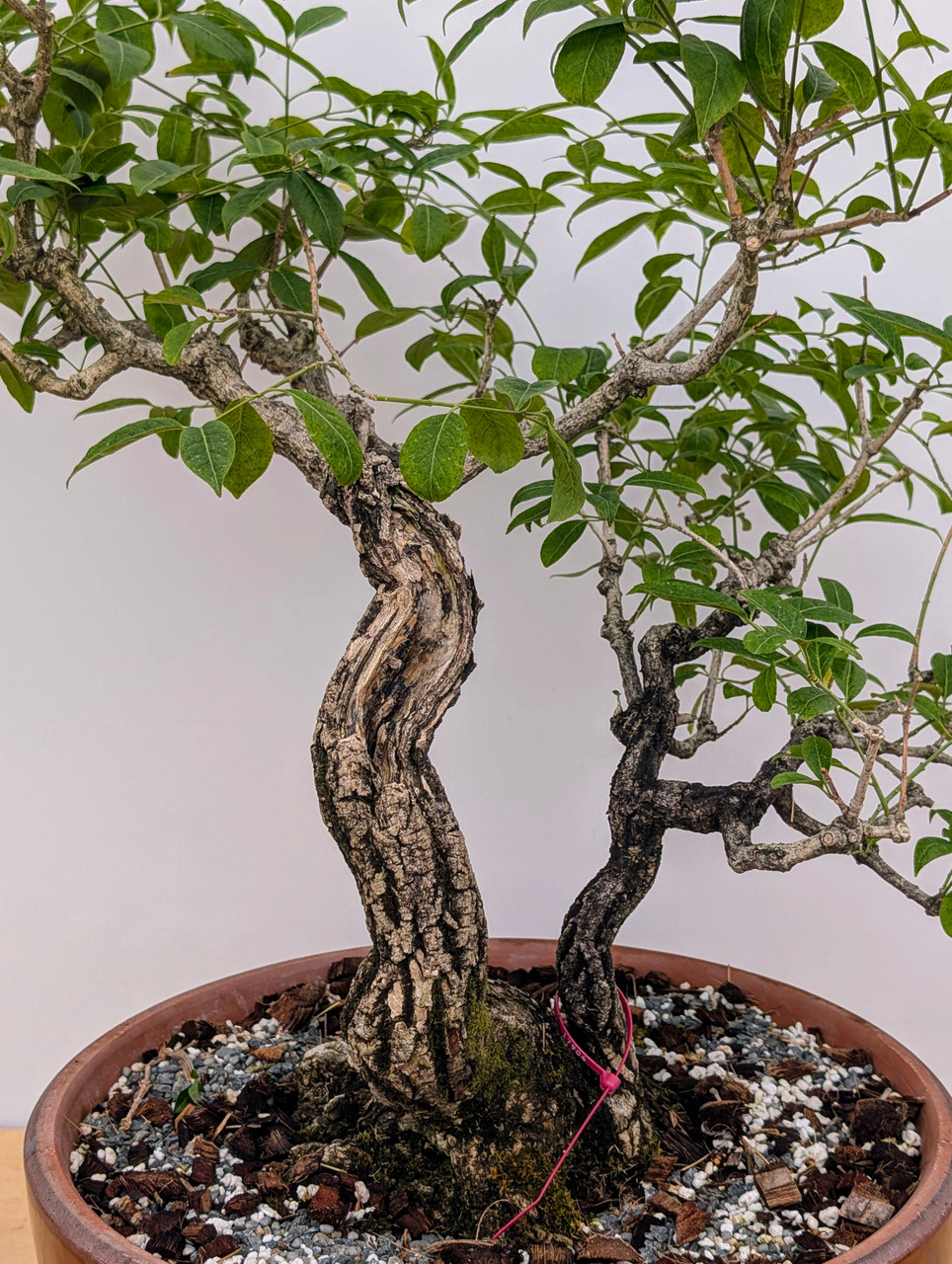 Distinctive Rough Bark: One of the most striking features of the Rough Bark Euonymus Alatus is its deeply furrowed, corky bark. This rough texture adds a sense of age and character to the bonsai, making it a visually interesting piece even during the dormant winter months.