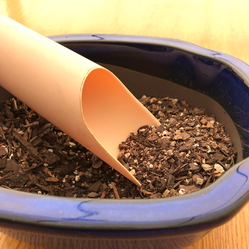 Set of three plastic soil scoops. Pretty much a must have when repotting.