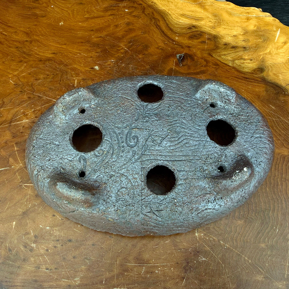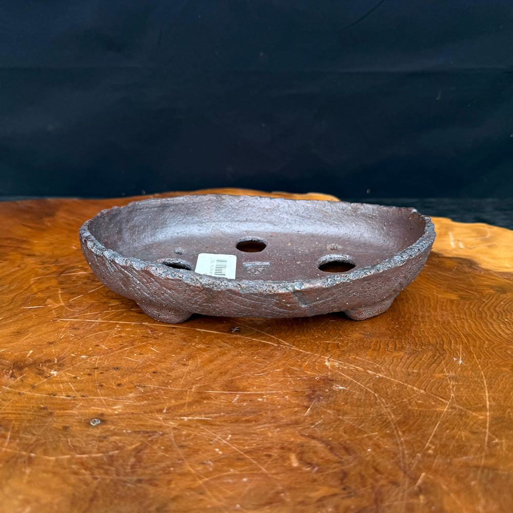 Unlike the darker wood-fired finishes, this pot offers a soft gray surface with natural kiln markings. Its smooth oval form balances rustic and refined, making it versatile for many bonsai styles. A warm clay interior contrasts beautifully with the subtle gray exterior.