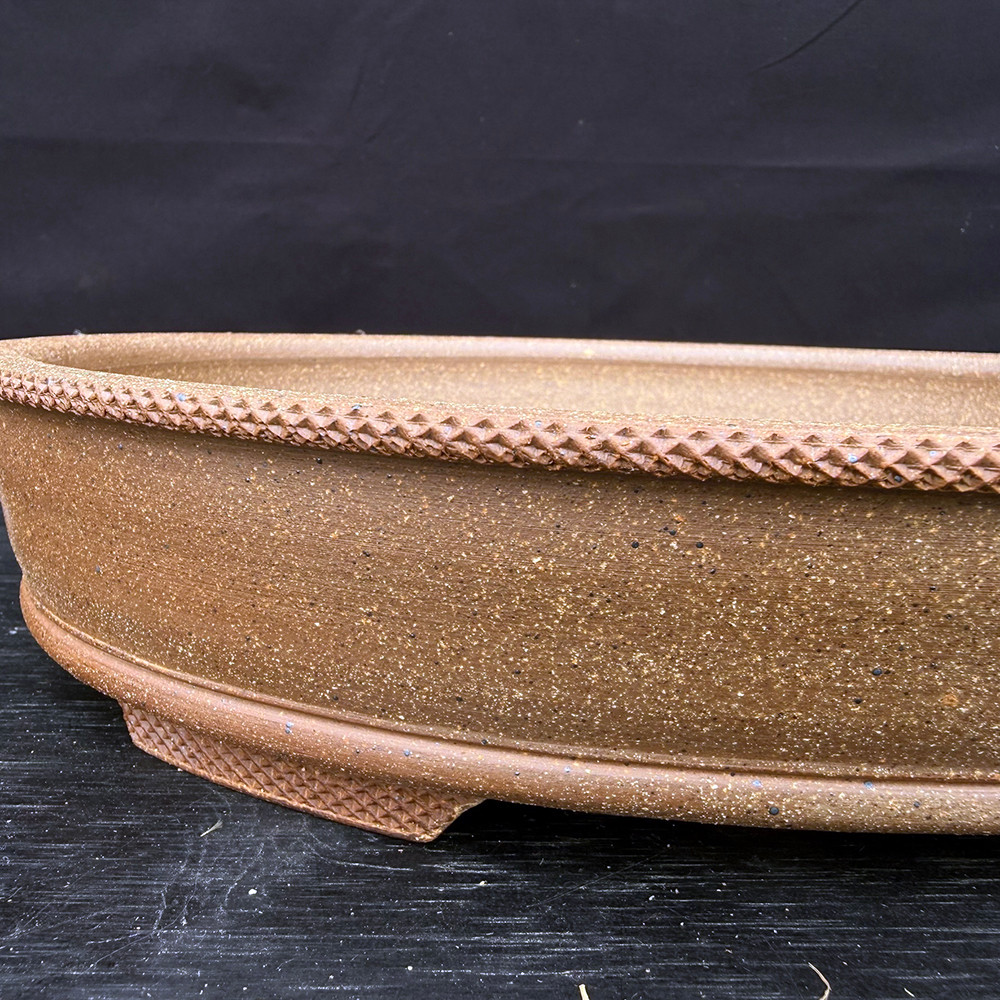 This handcrafted oval bonsai pot features a natural clay finish with subtle texture and a clean rim design. Compact yet functional, it’s an excellent option for smaller bonsai species or accent plantings.