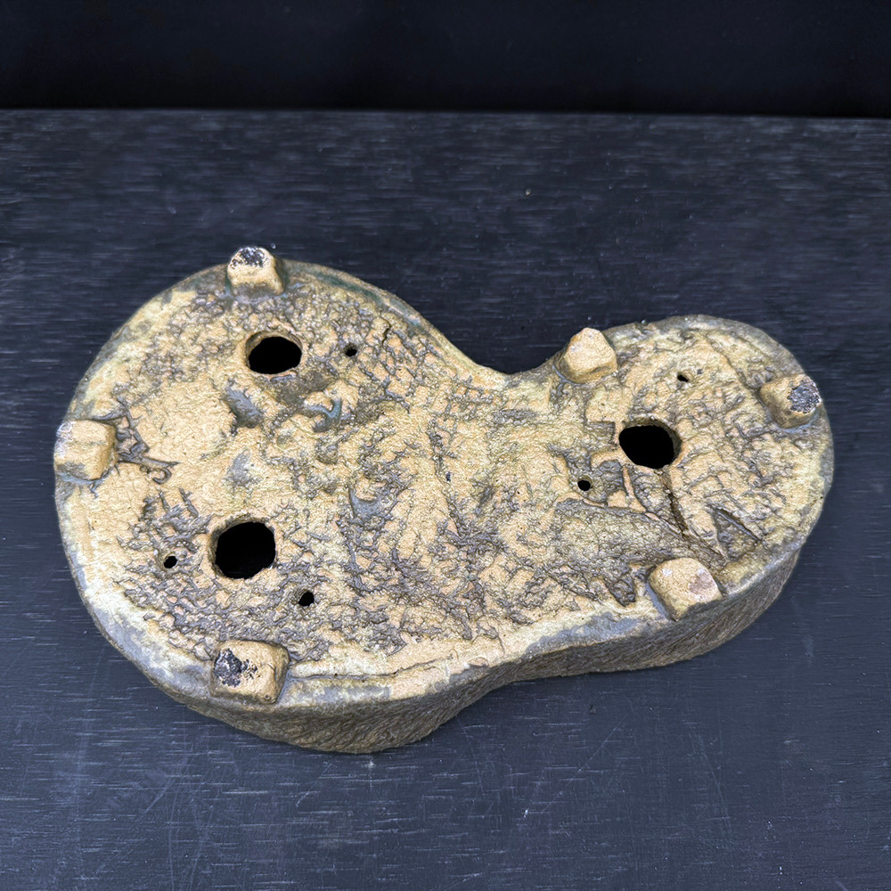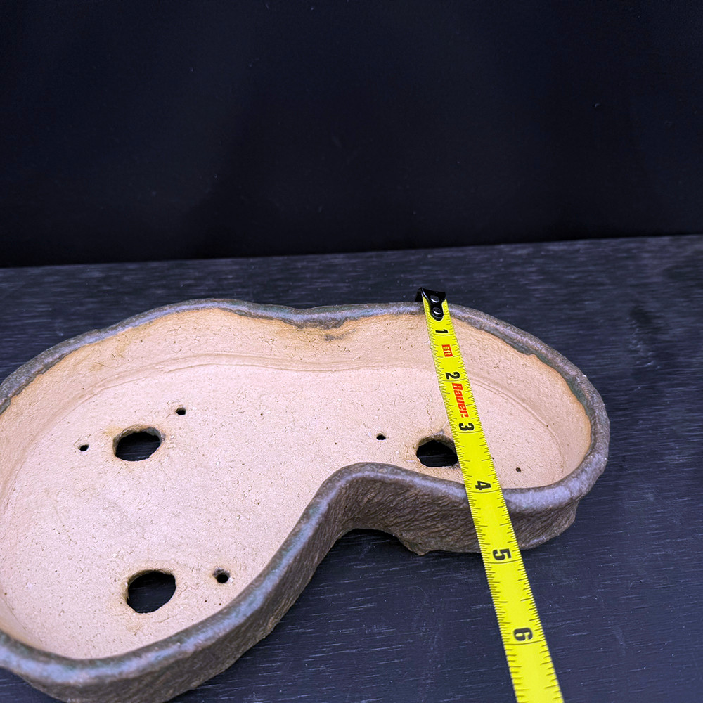 The inside is left unglazed with a sandy, natural clay tone that complements the rugged exterior. It’s a perfect choice for a shohin composition, mixed planting, or forest design.