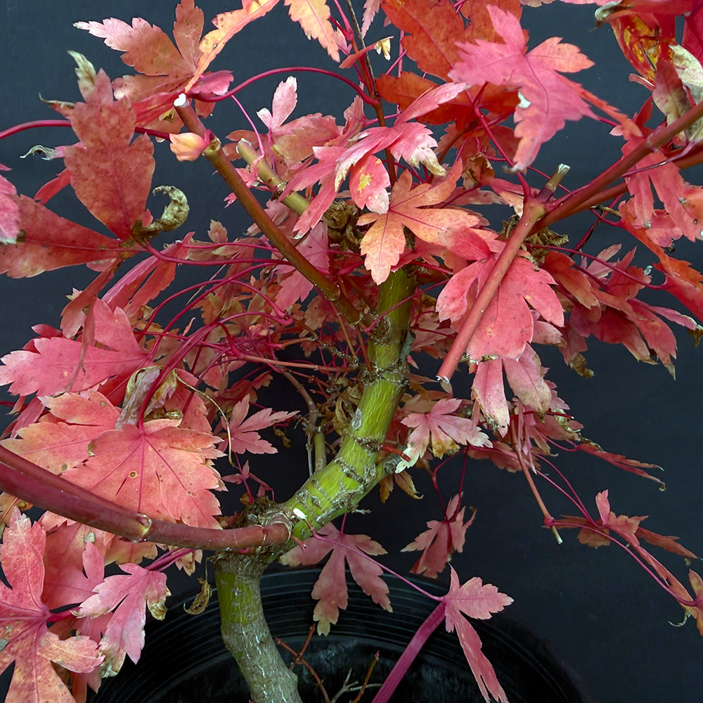 This Japanese Maple is putting on quite the fall performance — a burst of crimson, coral, and rose-red leaves that feel almost too vivid to be real. It’s the kind of tree that stops you mid-step in the greenhouse.