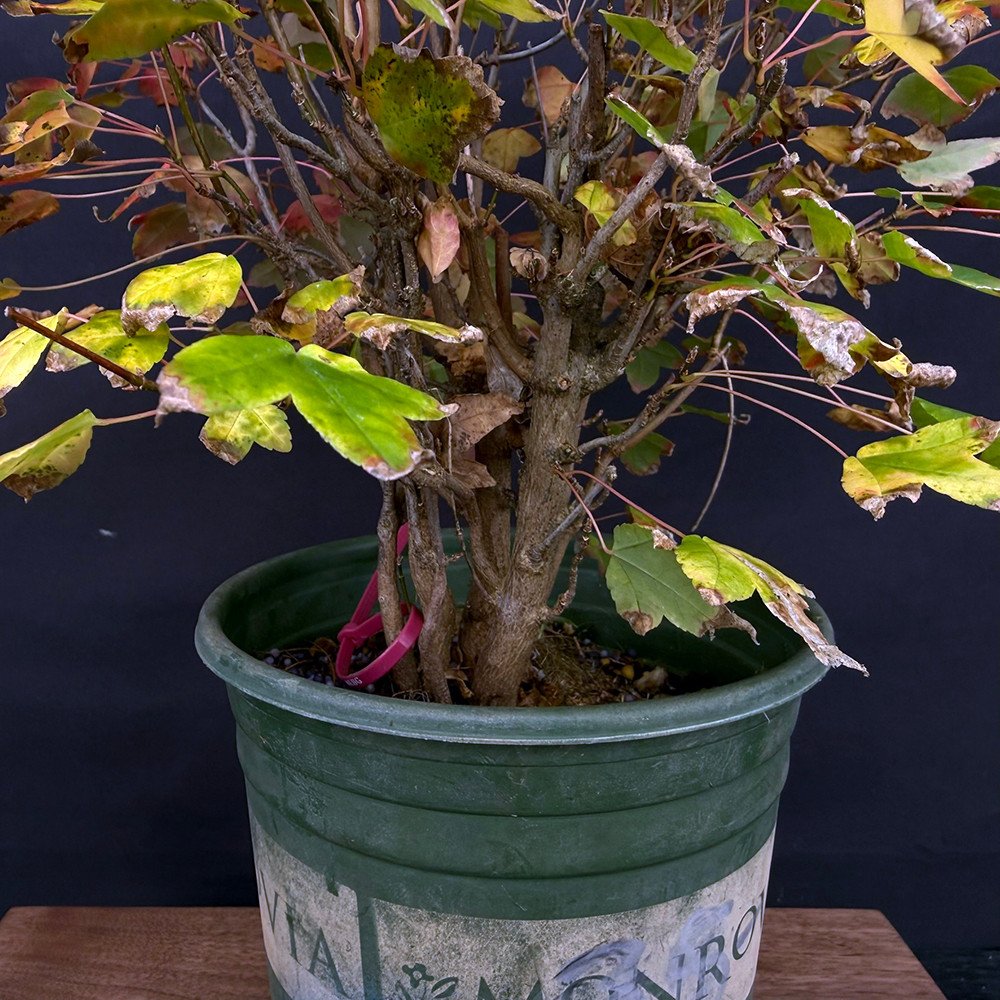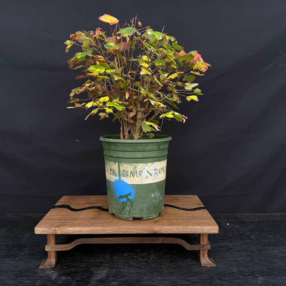 Trident Maples are among the most prized deciduous bonsai species for their durability, fast healing, and spectacular seasonal color. In spring and summer, they produce vibrant green, three-lobed leaves that turn fiery shades of red, orange, and gold in autumn. This specimen’s multi-trunk structure offers a unique opportunity for creative styling—refinement into a forest grouping, accentuating the base flare, or developing as a compact clump for dramatic proportion.