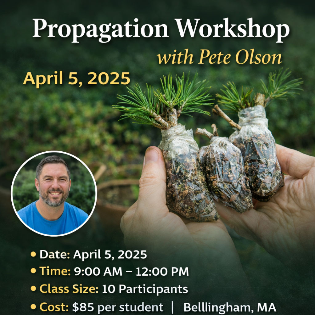 Back by popular demand! After a sold-out first year, we’re excited to bring back this hands-on Propagation Workshop with Pete Olson. If you’ve ever admired the trees throughout New England Bonsai Gardens and wondered how they were created, this workshop pulls back the curtain.